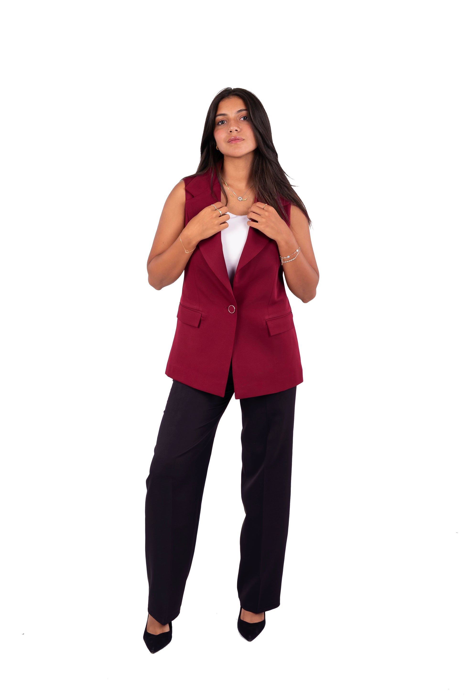 The Longline Vest elevates every outfit in your wardrobe. Its sleek, elongated silhouette creates a polished, chic, and structured look.,